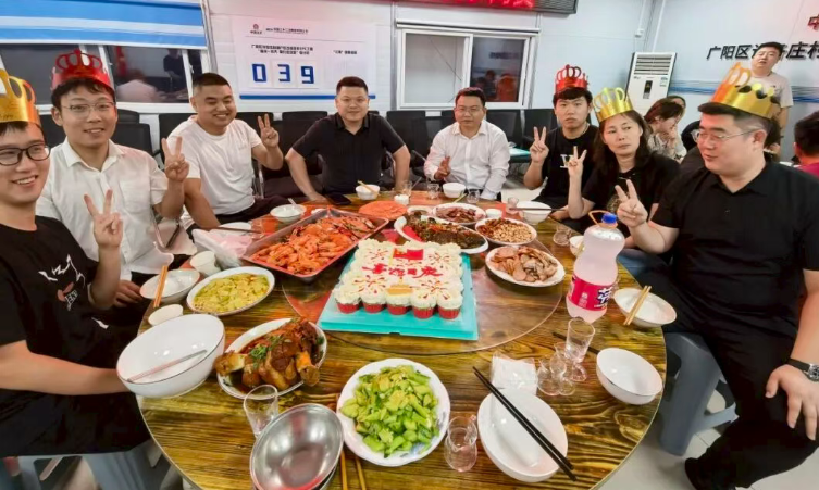 近日,山東公司廊坊許各莊項目為員工舉辦了一場溫馨融洽的集體生日會,為近期過生日的同事送上誠摯祝福。現場準備了精美的蛋糕,燭光閃爍中,壽星們共同許下心愿,大家在祝福聲中分享甜蜜,氣氛熱烈而融洽。