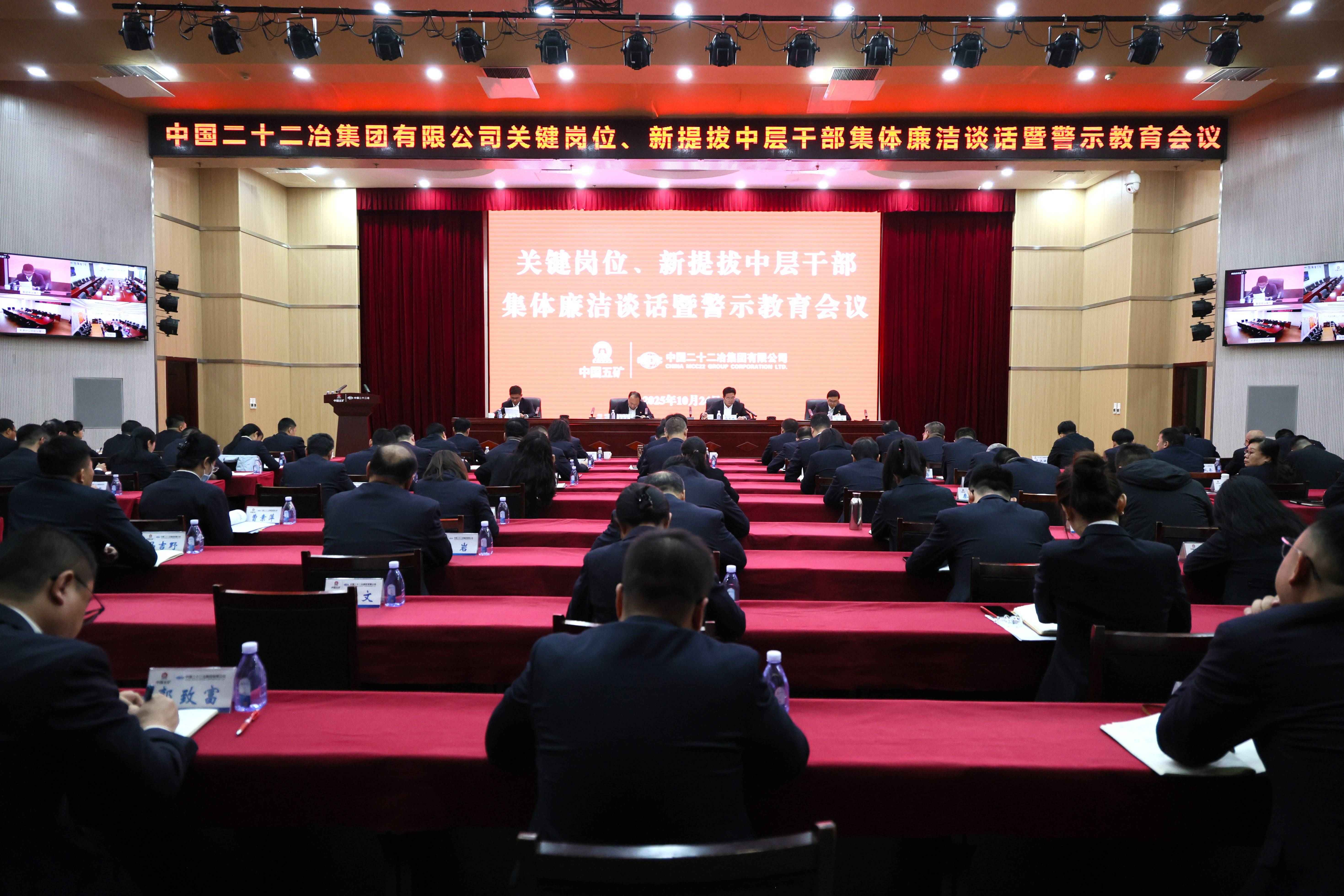 10月24日,中國二十二冶召開關鍵崗位、新提拔中層干部集體廉潔談話暨警示教育會。中國二十二冶黨委書記、董事長袁斯浪出席會議并講話,黨委副書記、職工董事張育鵬主持會議并作集體任職談話,紀委書記田和平做警示教育和集體廉潔談話。